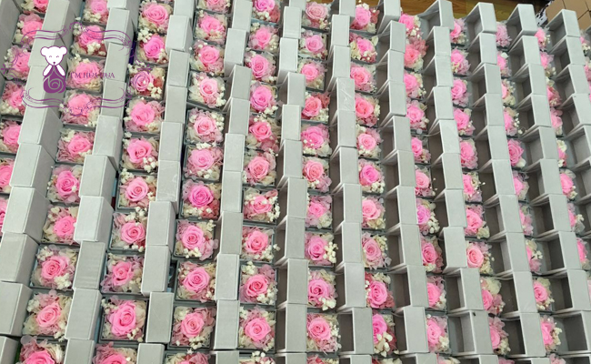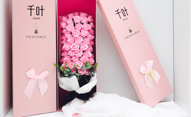 此次活動深深得到千葉珠寶大boss的認可,為了能夠成全更多的有情人,再次致電甜蜜點禮品有限公司產(chǎn)品經(jīng)理,專門定制了屬于千葉珠寶特有的51朵香皂花禮盒,為了讓收花的女孩兒堅定愛情,甜蜜點的設計師專門為其做成了拖尾婚紗的款式,既有特點,寓意也很深:“花如你,為你身穿嫁衣,待我來娶!”